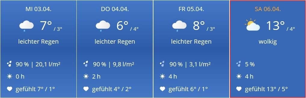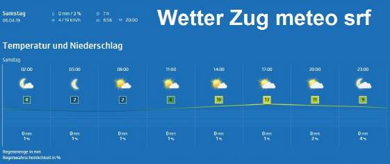 wetter.com-Aussichten ZG für SA, 6.April 2019 |