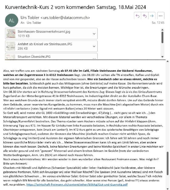 E-Mail vom SO, 12.Mai 2024 an alle Teilnehmenden hier