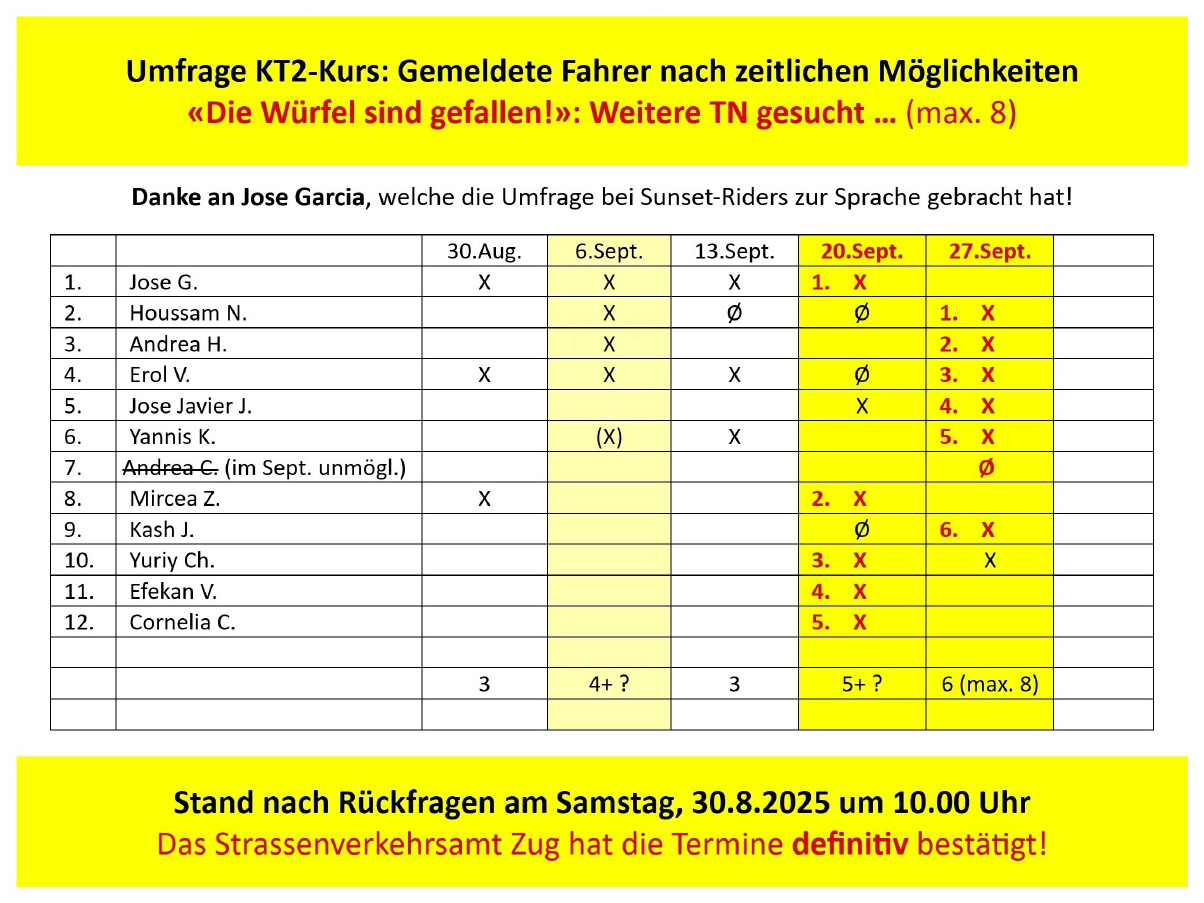 Letzte Informationen zum KT2-Kurs vom Samstag |