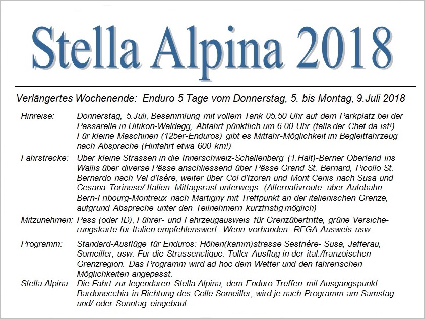 Link zur Geschichte der «Stella Alpina», dem grössten internat. Enduro-Treffen im Piemont |