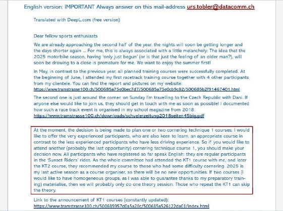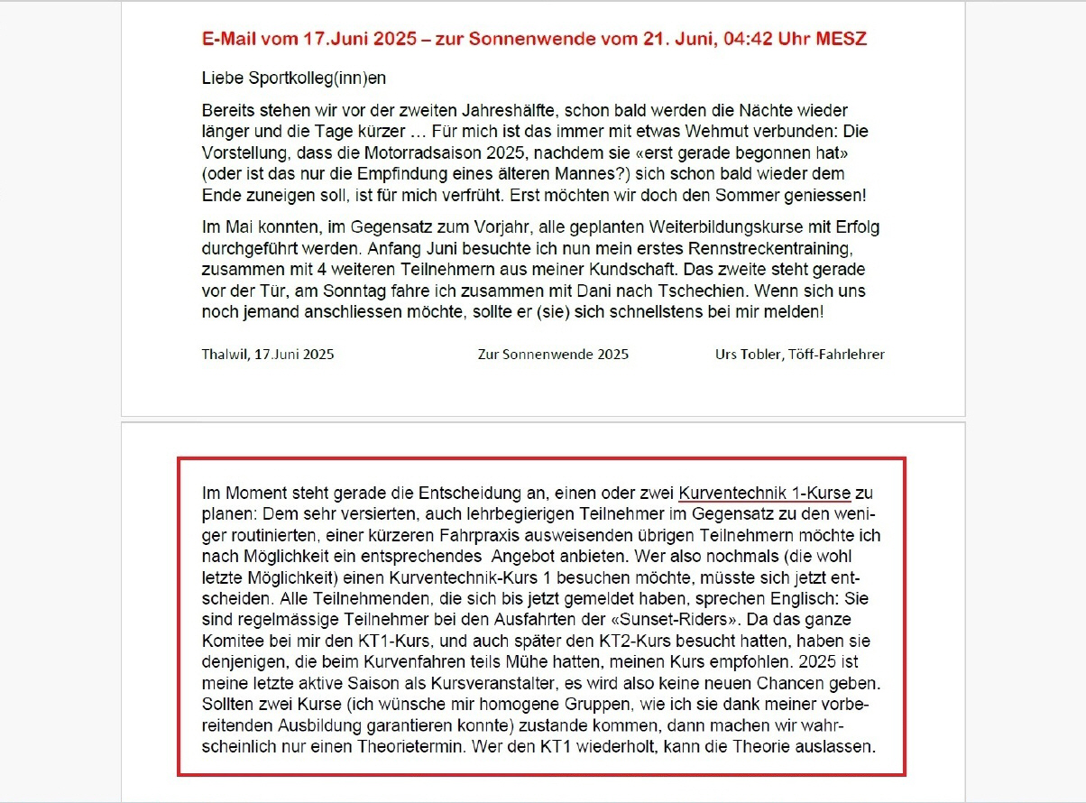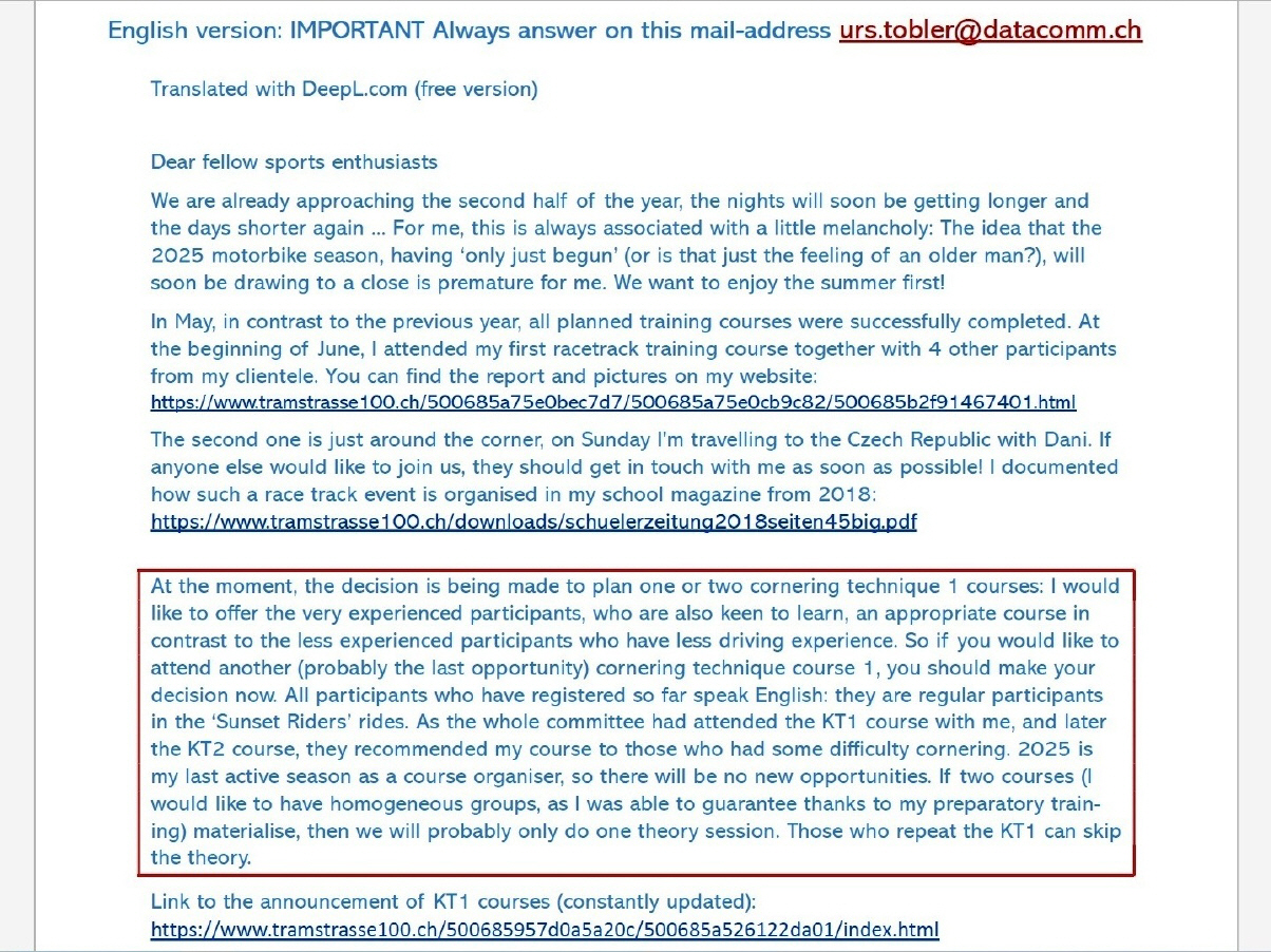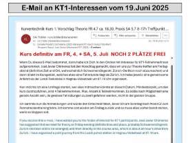 E-Mail vom/from 2.Juli/July 2 KT1-Kurs def.! |
