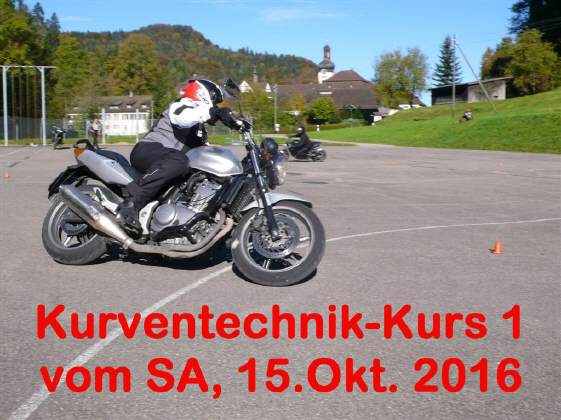 Der letzte Kurventechnik-Kurs 2016 Mitte Oktober fand am Samstag, 15.Okt. mit 4 Teilnehmern statt: Zwei Teilnehmer repetierten den Kurs. Hier geht's zu den Bildern. Der letzte Kurs in diesem Jahr fand nicht mehr statt. (mangels Teilnehmer)