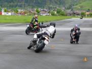Der Weiterbildungskurs in «Interlaken» ist ein fester Bestandteil in meinem Jahresprogramm. Wie immer konnten wir uns das Wetter auch in diesem Jahr nicht aussuchen, und so boten die Verhältnisse am 4.Mai alles, inklusive Schneehaufen am Strassenrand auf dem Weg ins Berner Oberland: Arthur und Roman waren etwas früher losgefahren, aber auch sie trafen vorwiegend auf nasse Strassen. Die Verhältnisse am Kurstag waren passabel, aber auf der kühleren Seite. Wir liessen es uns auf dem Heimweg nicht nehmen, die vielen Kurven über den Eriz zu fahren. Roli brachte es wieder fertig, uns mit zum Teil neuen Elementen zu fordern und ich übernahm die Rolle als Co-Instruktor und Übersetzer für die englischsprechenden Teilnehmer.