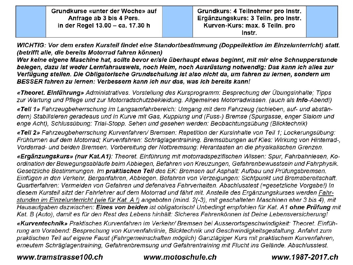 Wer den Kurs als Repetent besucht, muss die Theorie nicht zwingend besuchen. L-Fahrer/innen oder Weiterbildungsteilnehmende in der Repetition bezahlen nur Fr. 200.- ohne Theorie.