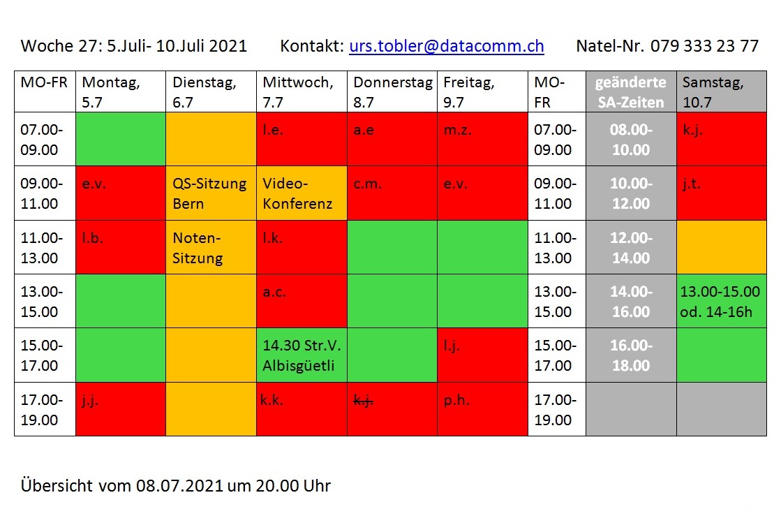 Woche 26 ist ausgebucht, die freien Termine in der Woche 27