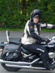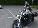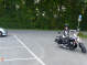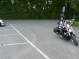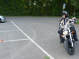 Eingangs der Kurve: Bilck zur Pylone, an der Pylone mit Blick und mit Töff bleiben, etwa in der Mitte Blick lösen und zum Ziel schauen! Dadurch kippt der Töff und mit Gas und Kupllung wird der Töff aus der Kurve herausgenommen. Blickt der Schüler anderswo hin, geht es nicht eng um die Kurve, blickt er auf den Boden: Augenblicklich wird der Fuss abgesetzt! Bild rechts: Detailansicht vom dritten Bild, Blick wandert weg von der Pylone - die Kurve wird weiter! |