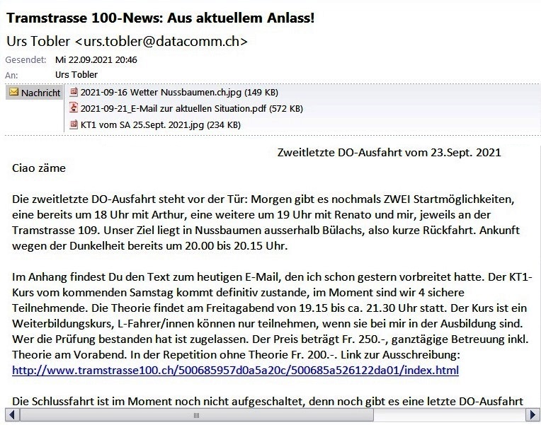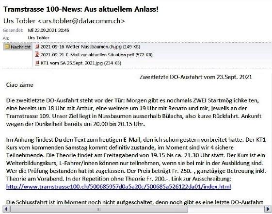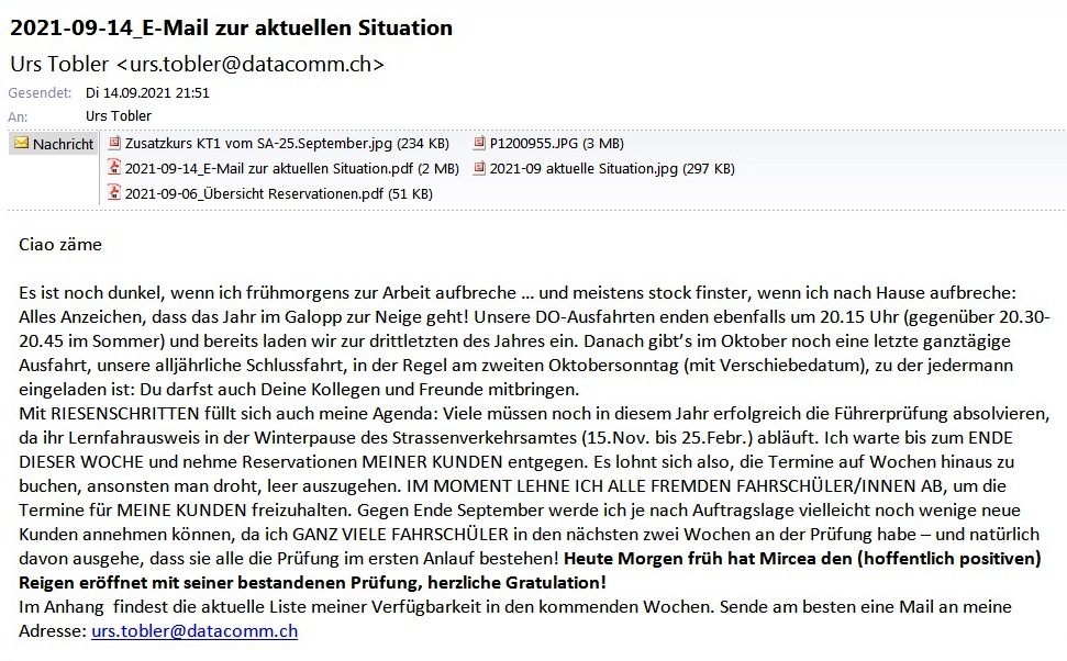 Das E-Mail vom 14.9.2021 zur aktuellen Situation |