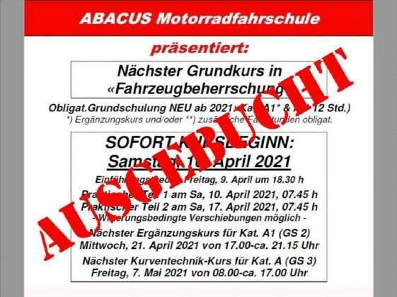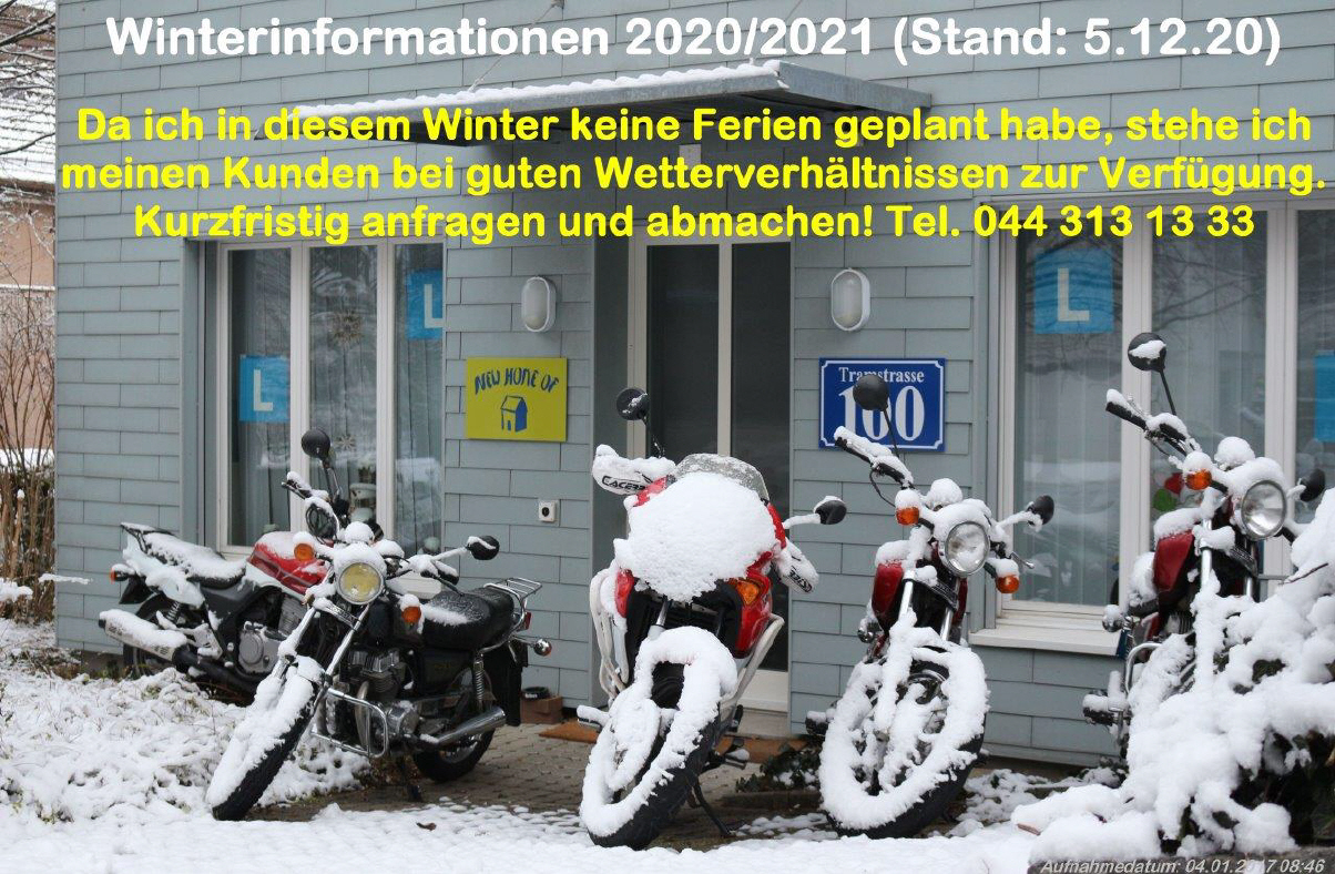 Nun ist das Strassenverkehrsamt für Kat. A/A1-Führerprüfungen bis am 3.April 2023 dicht! Ich arbeite auch im Winter, wenn es das Wetter erlaubt. Da es frühmorgens meistens sehr kalt ist, finden die Fahrlektionen nach Vereinbarung jeweils am Nachmittag statt: 079 333 23 77.