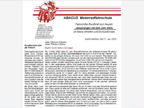 2024-01-23 Mail an «aktuelle Fahrschüler/innen» |