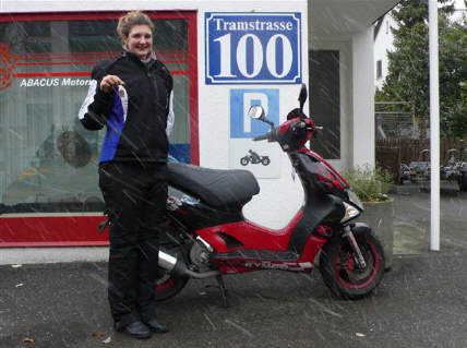 Damit haben sich die letzten 2 Kandidatinnen zur Prüfung begleiten lassen: Das gibt's nur für Fahrschüler und -innen mit einer abgeschlossenen Ausbildung! Sie haben es, trotz der winterlichen Verhältnisse gewagt - und auch gewonnen! Beide sind froh, dass sie es noch vor dem Winter abschliessen konnten. So zeigten sich die verschneiten Scooter nach der Verabschiedung an der Tramstrasse 100: Es schneit wieder, weiter... |