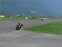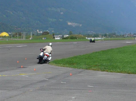 In einer ersten Runde wurde die Kurve - nach eigenem Gusto - mehrmals durchfahren: Klar wurde man immer schneller und schneller... Anschliessend war die Aufgabe gestellt, sie mit etwa 5-10 km/h weniger schnell anzufahren als im schnellsten Durchgang vorher, dann mitte der Kurve konnte man sich schön steigern in der Geschwindigkeit - EIN SUPER FEELING! |