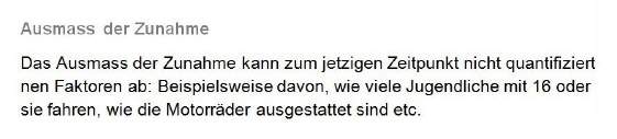 Die häufigste Unfallursache bei den 15-17-Jährigen ist die Verkehrsteilnahme auf dem Motorrad/Roller - dies dürfte in der Zukunft (leider) noch viel mehr zutreffen, wie der Blick ins Ausland zeigt! |