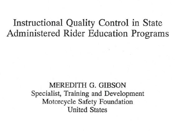 Der Chef-Instruktor Meredith G. "Hod" Gibson berichtete in einem eindrücklichen Referat über die Qualitätskontrolle der MSF RiderCourses und deren Instruktoren. In 39 (von insgesamt 50) Staaten, in den denen MSF präsent ist, erfüllen sie den Auftrag des Staates und müssen sich auch gegenüber den Behörden ausweisen. Wie das ungefähr abläuft und welche Beobachtungen er dabei gemacht hat, konnte er sehr publikumswirksam auf die Teilnehmenden rüberbringen. Er war der richtige Mann an der richtigen Stelle - und auch ein hervorragender Redner! Sein Speech hat es verdient, auch hier Beachtung zu finden, liefert er doch eine gute Vorlage, wie es auch bei uns laufen könnte/müsste. Das Referat fand vor fast 35 Jahren statt, es wirkt aber auch heute noch hochaktuell! Zum PDF-Download auf obiges Bild «klick»en!