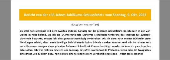 ab hier: Einladung zur 14. Internationalen Motorrad-Sicherheits-Konferenz in Köln von 2022, anlässlich welcher ich alleine teilgenommen habe.