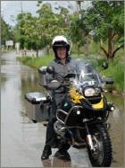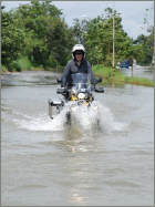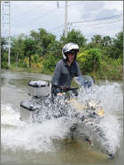 Friends, After a heavy downpour last night with water knee-deep in our lane and after straining my back hauling those heavy sandbags into place, today was time for a bit of fun. I took my new BMW R1200GS Adventure for a little test ride up through Nong Choke, Chachoengsao, Ban Sang and Prachinburi, the eastern suburbs of Bangkok. That's near where Philip's River Inn is, presently rather Philip's In River, as water has covered the entire plot. My daughter Lila went along with her car, to give some cash to our workers' team there, so I grabbed the opportunity and asked her to take a few pictures. I'll say it again: what a motorcycle! The perfect vehicle for present road conditions, especially on those wet muddy and sandy stretches. Was I grateful BMW insisted on delivering the bike with a set of knobly tires. I cursed when I got them, but today without them I'd have been on my side at least once, as the bike took control of me on a patch of ankle-deep sand. Wow! To the East of Bangkok, the catastrophe is not as bad as I had thought. Nevertheless, it is hard enough as it is for the folks who are living in knee-deep water for weeks, but I also got the sense that this is the way of life in these plains that are innundated every other year. On exiting and reentering Bangkok through the eastern suburbs there was less water than I thought. But then again, the canals, which often are higher then the residential areas, and which are used for drainage, are full to the brim. It's close call, but I think chances are we'll survive - with wet feet. So what! Having said that, the situation to Bangkok's North remains chaotic, and ten thousands of people are suffering seriously from the water masses. I'll tell you this, one can say many things about Thailand, but when they are in dire straits, people still manage a smile, like that family on the tractor. As Ali G would say: Respect! Well, after the frustrations and concerns, after preparing sandbags, food and emergency supplies for the last 7 days, it felt good to go out and have a bit of fun on the bike. There's rain, thunder and lightning in my area right now, so I better go and check on those sandbags again. Philip Philip A. Baechtold Cell-Phone +66877086770