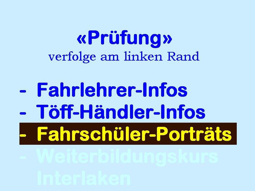 Über Pfeil oben rechts «Weiter» zu «Fahrschüler-Porträts» - Inhaltsverzeichnis |