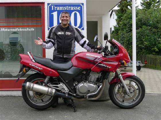 Das Unmögliche möglich gemacht hat Giles! Ich habe ihm gesagt, er würde die Prüfung auf seiner 1900er-Yamaha Chopper NIE schaffen - hat er auch nicht, aber wie er trotzdem zu seinem Führerausweis gekommen ist, ist eine längere Geschichte...