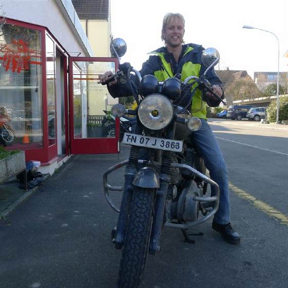 Es handelt sich nicht um einen ehemaligen Fahrschüler von mir, aber er findet trotzdem einen Platz auf meiner Homepage («Töff, Töff - nüt als Töff!») Im NZZ-Folio 2 kam dieser Bericht, den ich als PDF [202 KB]