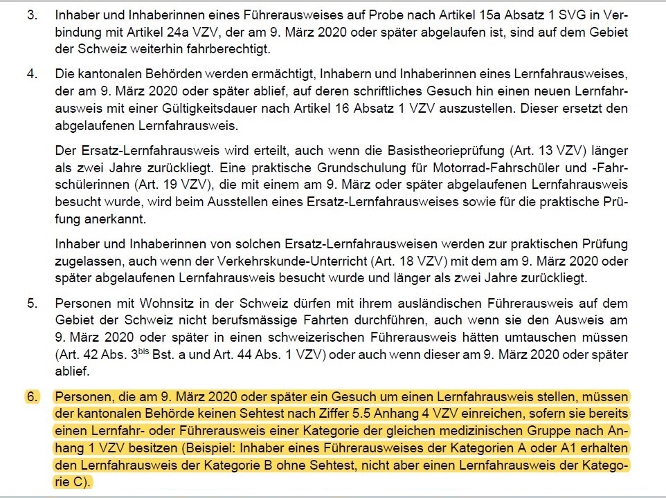 SFV (Schweiz. Fahrlehrer-Verband) Rundschreiben in Deutsch als PDF [130 KB]