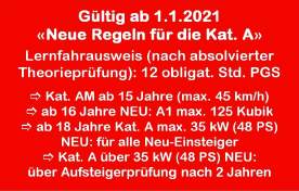 Neue Regeln für die Kat. A ab 1.April 2016 |