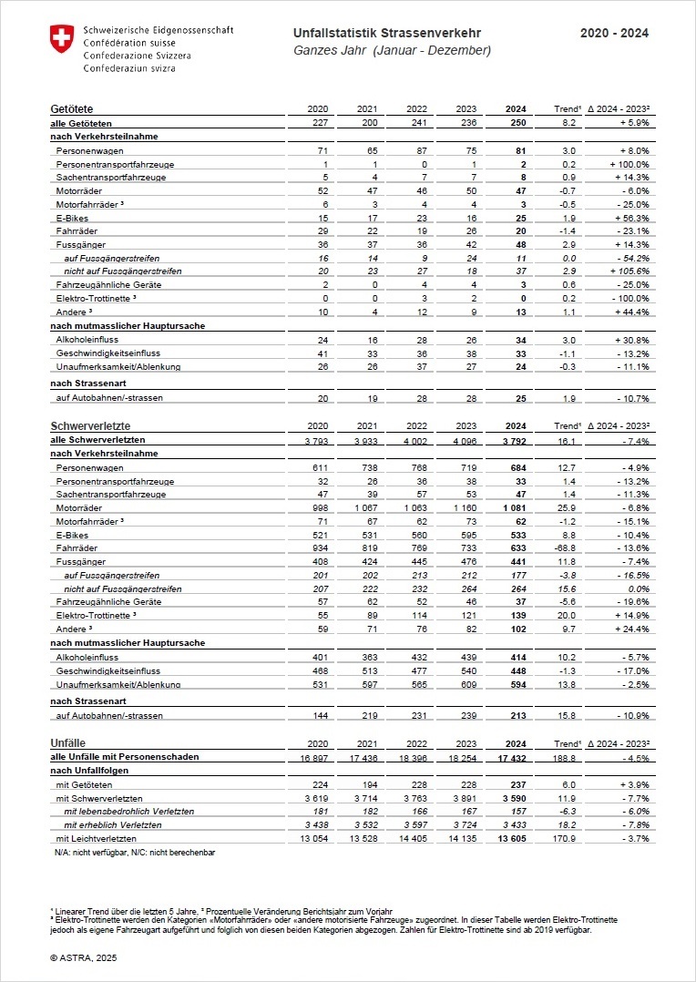 Der Bericht vom 03.03.2025 zu den Strassenverkehrsunfällen 2024 als PDF [1'132 KB]