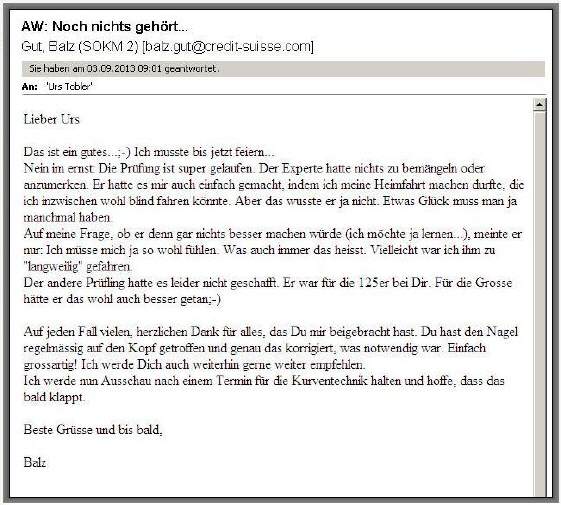 E-Mail vom 2.Sept. 2013: Hallo Balz |