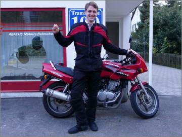 Nach der Ausbildung in meiner Töff-Fahrschule ist die Führerprüfung keine Hexerei mehr: Gut ausgebildet schüttelt man die Prüfungsanforderungen locker aus dem Ärmel ... Das tönt vielleicht nach «geringen Prüfungsanforderungen»? Nein, mitnichten - sondern nach hohen Ausbildungsanforderungen: Wer die Ausbildungsanforderungen an der Tramstrasse 100 erfüllt, in dem er sich von A bis Z bis und mit Prüfungsvorbereitung ausbilden lässt, darf ruhigen Gewissens an die Prüfung gehen und erwarten, dass er/sie sie im ersten Anlauf besteht. Dies gelingt fast ausnahmslos, negative Prüfungen in Begleitung des Fahrlehrers sind eine absolute Seltenheit. Begleitet wird aber nur, sofern sich der Kunde, die Kundin umfassend ausbilden liess. |