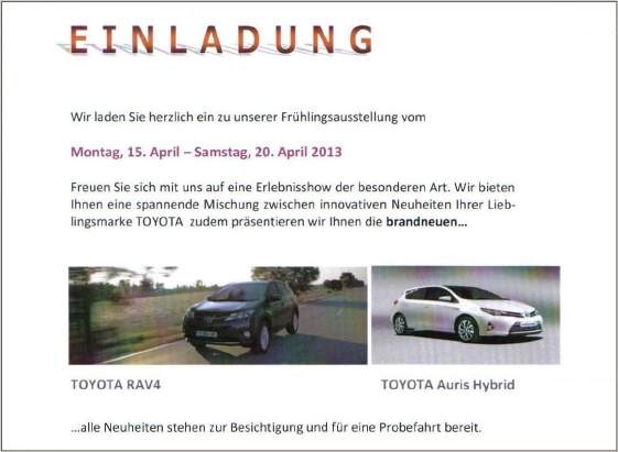 Mein Toyota-Garagist: 1 Woche Frühlingsausstellung |