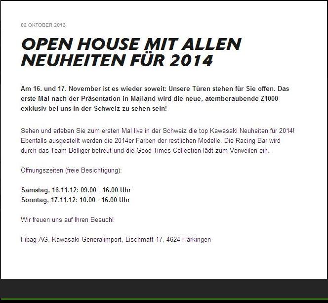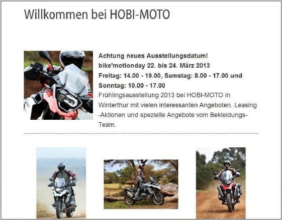 Mehr über den Pfeil oben rechts «Weiter» zu «Wieder-Eröffnung 2wheel-tec 24./25.Aug. 2013» |