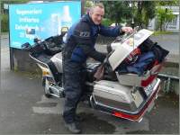 Wenn eine solche Fahrt bevorsteht, dann verfolgt man bereits 5 Tage zuvor den Wetterbericht: Er war für Auffahrt nie wirklich schlecht, aber es bestand die Gefahr einer Regenzone, die noch nicht ganz abgezogen sein könnte. So war die bange Frage: Wie weit ist sie dann wirklich, wenns losgeht? Als ich um 7 Uhr aufstand, war im Westen überall blauer Himmel zu sehen. Später beim Kaffeetrinken zogen dunkle Wolken auf und es fielen Regentropfen. Als wir zum Töff runtergingen um halb neun Uhr, war die Strasse zwar noch nass, aber der Himmel zeigte in Richtung Westen blaue Lichtungen... |