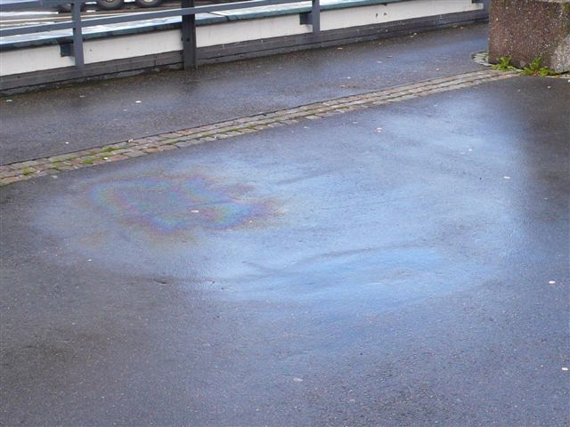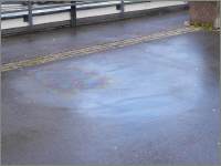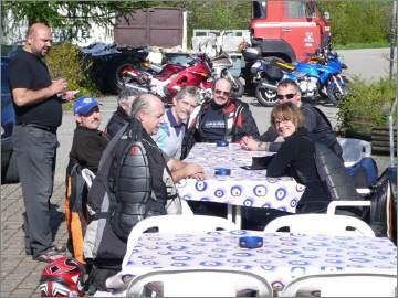 Als wir um fünf nach neun Uhr eintrafen, hiess es erst einmal tanken: In der Gruppe startet man IMMER mit vollem Tank! Dann fuhren wir auf den Parkplatz beim Eingang: Dort wartete bereits eine ganze Truppe, die offenbar ihre Ausfahrt um 9 Uhr starteten, denn kurz nachdem ich meinen Töff parkiert hatte, war der Parkplatz leer - nein, ein Töff stand auch noch da mit einer nicht ganz unbekannten AG-Nummer: Neuer Töff, alte Nummer! Da, wo vorher die startbereite Gruppe stand, hinterliessen sie einen Riesenfleck: Töff-Marke?