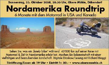 Danke für den Link auf meine Homepage! Du weißt ja, ich war 1986 (das ist genau 20 Jahre her) auch an all den Ecken, die Du jetzt bereist. Habe ein bisschen in die letzten Tage reingeschaut: Grand Canyon, Price Canyon, Monument Valley, Four Corners – alles auch noch präsent nach all den Jahren und mit vielen Erinnerungen besetzt. Es gibt im Fall entlang der Grenze zu Mexico eine Strasse entlang dem Rio Grande oder wie er heisst, bei uns war es z.T. noch gekiest, aber landschaftlich reizvoll. Man kommt dann irgendwo im Big XXX (Ben, nein Bend oder so) –Park wieder raus. Vielleicht als kleinen Tipp! Machs guet und heb dr Sorg. Falls Du mal eine Diaschau bzw. Bilderschau veranstalten würdest wenn Du zurück bist, lass es mich wissen. Ganz lieben Gruss von der Tramstrasse 100, Urs Tobler, Töff-Fahrlehrer