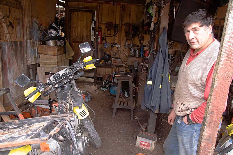 Die Sorgen sind gross. Meine Ponderosa ist krank und verliert Öl. Die Reise scheint zu Ende bevor sie begonnen hat. Ein Anruf in Puerto Mont bei meinem Mechaniker Guillermo hilft nicht weiter. Keine Ersatzteile in ganz Chile.... Dann finde ich Don Fernando. Ein Töffahrer und –Mechaniker. Er zerlegt den Töff, bis er bei der gebrochenen Dichtung angekommen ist und schneidet aus Dichtungskarton mit der Schere eine Neue aus. Problem gelöst, die Reise geht weiter.