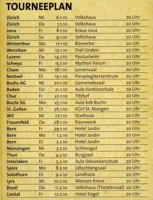 alles gute fuer's neue Jahr. Den Vortrag "Die GROSSE Reise" kann ich nur empfehlen. Ich habe die Veranstaltung letzten Samstag besucht im Volkshaus in Zuerich, einfach nur super!