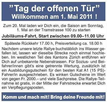 Saisonstart am Sonntag, 1.Mai 2011 |