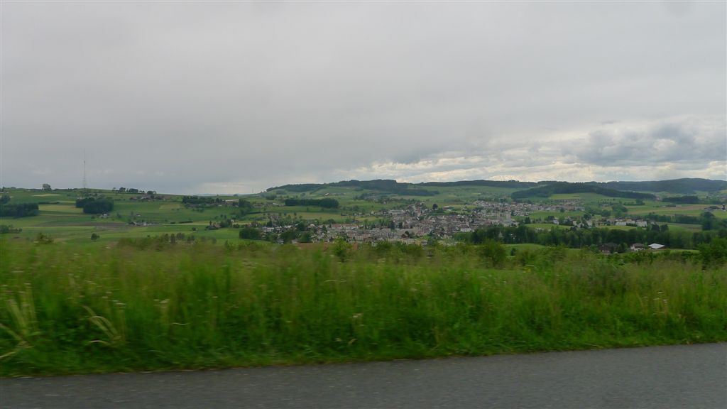 | Von der Waldegg ging es erst nach Birmensdorf, wo wir bei Delta-Motos einen ersten Halt einlegten. Da gab es aber keine Brillen zu kaufen. Von dort fuhren wir über Aesch nach Ober- und Unterlunkhofen, überquerten die Reuss, und fuhren unsere angestammte Strecke über Birri nach Muri und über den Lindenberg nach Müswangen und Hitzkirch. Da die Strassen inzwischen abgetrocknet waren, entschied ich mich doch über Herlisberg nach Beromünster zu fahren. So kamen wir beim Töff-Lade A Team vorbei, wo ich mir eine (teure) Carrera-Brille erstand. Der Aufstieg nach Herlisberg verlief in gewohnter Manier, sooo geil! Gas geben macht nie soviel Spass, wie wenn es bergauf geht. Oben angekommen gab es einen herrlichen Blick auf das Dorf Beromünster. (Bild unten) |