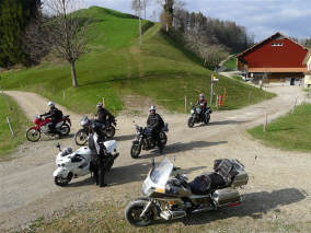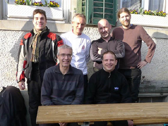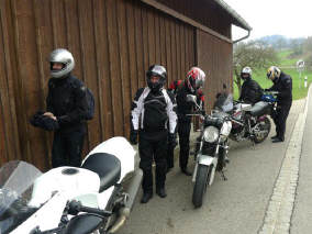 Vor knapp einer Woche wurde die Zeit umgestellt: Morgens um 7 Uhr ist noch dunkel und aufgrund des klaren Himmels in der Nacht saukalt. So war der Treffpunkt um 8 Uhr ausnahmsweise im Rest. Flamingo in Brüttisellen, von wo aus wir in 45 Minuten gemeinsam ins Rest. Sternen in Fischingen/TG fuhren. Wir genossen den Weg über Fehraltorf-Turbenthal nach Bichelsee und Dussnang nach Fischingen, die Gruppe fuhr sehr homogen, z.T. aber mit grossen Abständen hinter mir her. In Thalwil war ich noch im Trockenen gestartet, in Brüttisellen zog ich die Regenkombi über gegen die Kälte und Nässe, die wir schliesslich im Oberland antrafen. Nach einer Aufwärmpause bei Kaffee und Gipfeli machten wir uns um Viertel nach 9 Uhr an die Arbeit.