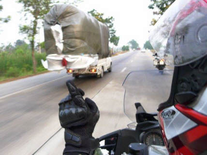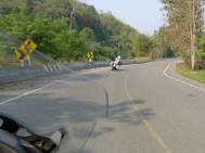 Die dreitägige Ausfahrt mit Philip planten wir anlässlich des Besuchs am Anfang unserer Reise: Zu diesem Zeitpunkt wussten wir noch nicht, wie wir uns in Australien bewegen. Von Australien zurück waren Sigrid als Soziusfahrerin und ich als Fahrer ein eingespieltes Team. Deshalb sind (vom Soziusplatz während des Fahrens) einige gute Fotos herausgekommen. Unsere Fahrt begann am Montagmorgen früh, gegen halb 7 Uhr mit der Fahrt durch den Morgenverkehr von Bangkok. Etwa eine Stunde danach tranken wir unseren ersten Kaffee in einer Tankstelle. |