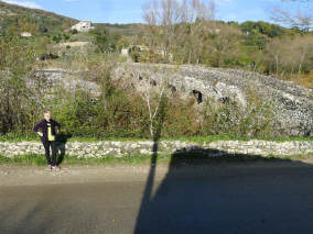 Auf dem Weg wird immer wieder die Bahnlinie überquert und man fährt an einem Atommeiler vorbei, daneben riesige Zementfabriken, die sehr energieaufwändig sind, als Nachbarn. Immer wieder beeindrucken grosse Eisen- und Betonbrücken, die hier schiffbare Rhone teilweise mehrsprurig überspannen. Auch wollte ich unbedingt Sigrid bei Viviers die über 2000 Jahre alte Römerbrücke, welche immer noch intakt ist. Allerdings war sie nun mit einem Fahrverbot belegt, vor Jahren sah ich noch Autos darüber fahren. Die Wassermassen dieses Sommers hatten viele Äste und Bäume angeschwemmt, die in den Torbogen hängen blieben. Würde jetzt wieder viel Wasser kommen, könnte die Brücke Schaden nehmen, wenn der Durchfluss nicht gereinigt wird. Es ist schade, wie fahrlässig wir mit einem solchen Erbe umgehen. Natürlich hat die Brücke heute keine verkehrstechnische Bedeutung mehr, sie ist aber ein Zeitzeuge: Ich frage mich, was man von unserer Zivilisation in zwei Tausend Jahren noch sehen wird. |