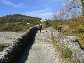 So brach der 3.Reisetag an: Wir erwachten um halb 9 Uhr und mussten uns fast noch auf die Socken machen, das tolle Frühstücksbuffet (bis halb 10) nicht zu verpassen. Der Speisesaal war erst vor ein paar Tagen neu geplättelt (Boden) worden, das Inventar neuwertig und alles war fantastisch beleuchtet, hübsche Bilder an der Wand, die zu kaufen waren. Das Buffet sah sehr einladend aus und es fehlte an nichts, auch die Eier konnte man sich nach Wunsch zubereiten lassen. So verwöhnt lässt es sich leben und so kamen wir noch fast in Zeitnot mit dem Räumen des Zimmers. Pünktlich um 11 Uhr ging das Telefon, wo wir aufmerksam gemacht wurden, dass die Zeit abgelaufen sei für das Auschecken. Wir sahen bei der Rezeption, weshalb: Eine riesige chinesische Reisegruppe wartete darauf, Zimmer zu beziehen. So brachten wir unser Gepäck zum Auto und machten anschliessend noch einen kleinen Rundgang durchs Städtchen. Auch wollten wir bei Tag die Brücke begehen, die wir schon in der Nacht zuvor begangen waren. Eine Hängebrücke ist immer wieder ein Erlebnis: Diese Brücke war wohl bestimmt schon sehr alt und vieles aus Holz gebaut. Dies war ja der Zweck unserer Reise: Etwas davon mitzubekommen, wo man durchfährt. Hätten wir die Autobahn genommen, so hätten wir alles verpasst. So war es wieder Mittag geworden, bis wir aufbrachen und die Fahrt führte weiterhin der Rhone entlang Richtung Süden. |