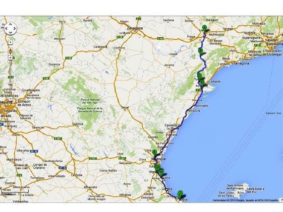 Bei Amposta trafen wir auf das Mittelmeer. Auf den schnellen Nationalstrassen, oft 4spurig ausgebaut, kamen wir flott vorwärts, passierten Valencia und versuchten möglichst küstennah nach Denia zu kommen. Unerwartet schnell trafen wir am Nachmittag dort ein und wir fanden schliesslich aufgrund der Adressangaben unser Ferienhaus. Der Schlüssel passte zum Schloss der Gartentüre, der zweite Schlüssel zur Haustüre – wir waren angekommen: Nach 1745 Kilometer, mit € 2.30 Autobahn-Maut sind wir am Ziel eingetroffen. |