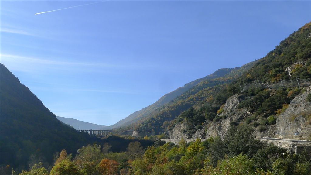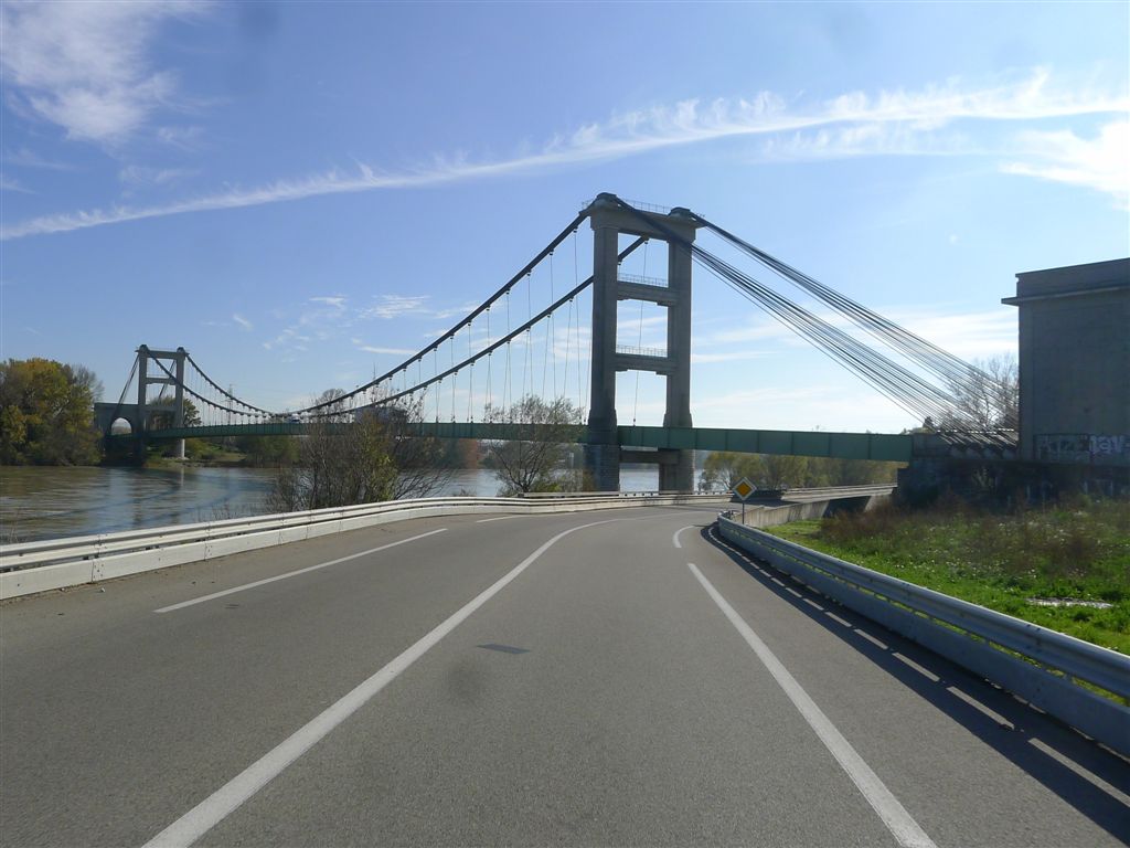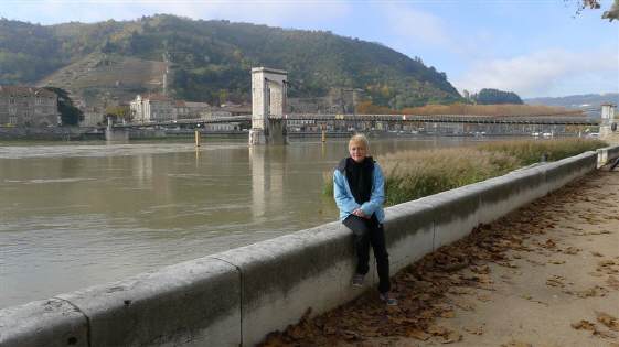 Diese Hauptstrasse habe ich ebenfalls seit Jahrzehnten nie mehr befahren und es war interessant, über diese landschaftlich schöne Gegend ins Rhonetal zu fahren. Erst war es sehr kurvenreich und bergig. Dann landeten wir in der weiten Ebene, die immer wieder von neuem beeindruckt. Es ist ein Garten Eden, landwirtschaftlich ausgenutzt bis in die hinterste Ecke und mit vielen Verkehrsträgern erschlossen. Lyon konnten wir geschickt mit Schnellstrassen um-fahren, da wir genau zur abendlichen Hauptverkehrszeit von Norden her die Stadt erreichten und wir landeten nach einem heftigen Regenguss wieder auf der N7, die östlich entlang der Rhone nach Süden führt. In Rousillon, wo ich geplant hatte zu übernachten, fanden wir kein geeignetes Hotel, da die meisten um diese Jahreszeit geschlossen waren. Im noch weiter südlich liegenden Tain-l‘Hermitage fanden wir schliesslich ein nettes Familienhotel, wunderbar am Flussufer gelegen mit einer geschlossenen Garage für unser Auto. Im Haus vis-à-vis genossen wir unseren wohlverdienten Znacht, mit schönster Sicht auf die restaurierte Hängebrücke, die nur noch von Fussgängern und Velofahrern benützt werden darf. Nach einem Spaziergang über die Brücke begaben wir uns zurück ins Hotel, wo wir ziemlich müde von der Fahrt fast null-komma-plötzlich einschliefen. |