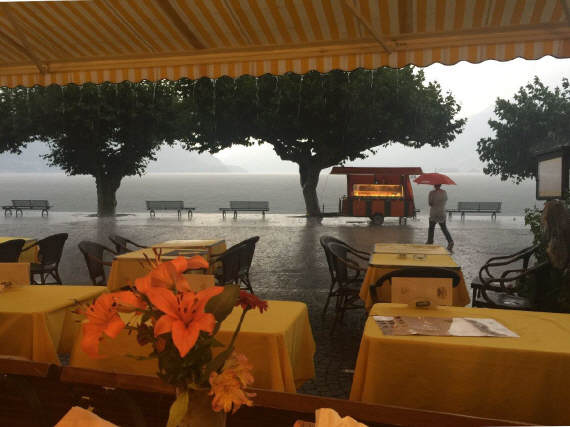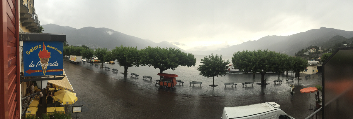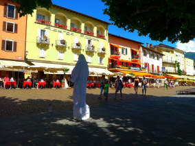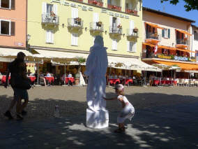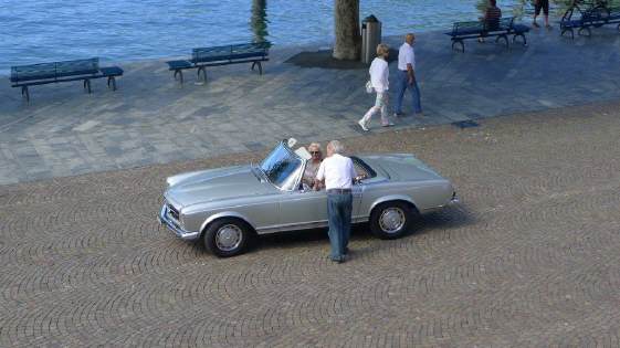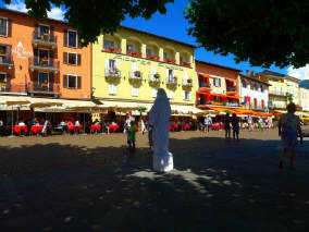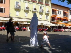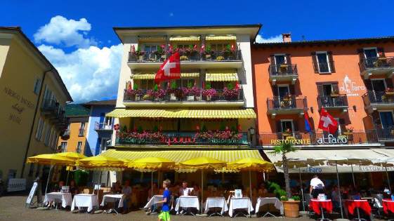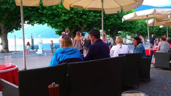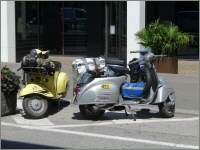 Unterwegs in Ascona sahen wir vier «coole Typen» mit ihren Oldtimer-Vespas im Café sitzen. Auf diesen Gefährten über die Pässe zu fahren (mit Walliser Kennzeichen) ist ein Härtetest für das Rückgrad: Die kleinen Räder fallen in jedes Loch, in jede Unebenheit - und dies bei vollbeladenem Fahrzeug mit Feriengepäck, das bereits einen grossen Teil der Federung aufbraucht ... Die Generation ihrer Grosseltern fuhren auch solche Distanzen, weil die Vespa das einzige Gefährt war, das sie sich leisten konnten. Die Cafés aber damals in Ascona sahen wahrscheinlich noch etwas anders aus!