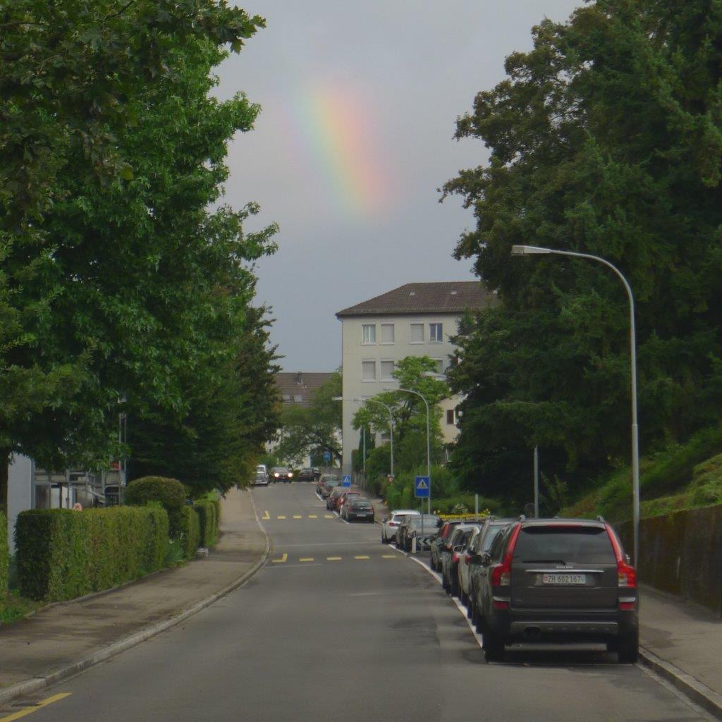 Über unsere bevorzugte Axen-Strasse ging es vorbei an Schwyz, Küssnacht, Zug ins Sihltal und ab da ist es jeweils nur noch ein Katzensprung bis nach Thalwil, wo wir von einem wunderbaren Regenbogen empfengen wurden: So macht hei cho Spass!