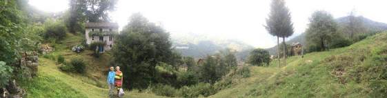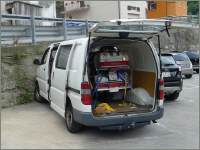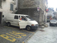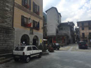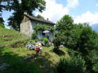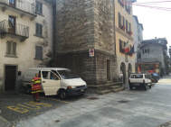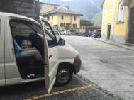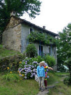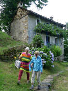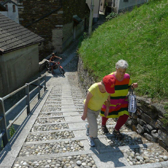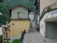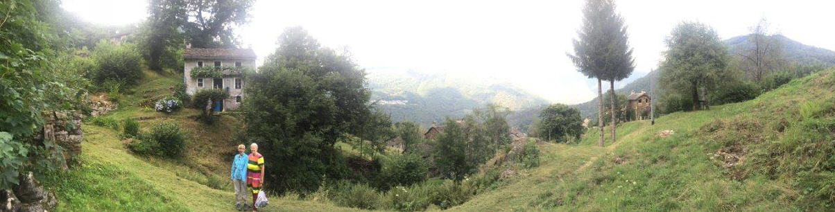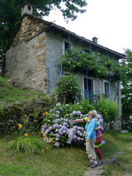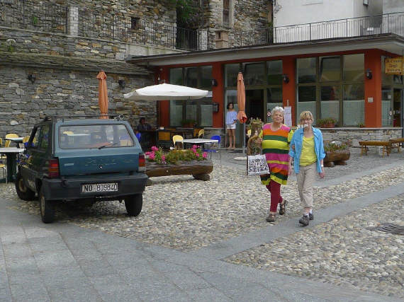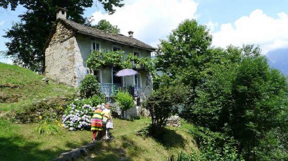 Die Strecke dem Langensee entlang ist mir sehr bekannt, es ist eine unserer Lieblingsstrecken, wenigstens solange es kein dichter Sonntagsverkehr ist und unzählige Reisecars entgegenkommen. An diesem Morgen jedenfalls waren wir flux an die Grenze und niemand wollte etwas darüber wissen, warum in meinem Bus ein Töff mitfährt. Kurz danach bog die Strasse rechts ab: Strasse ist etwas viel gesagt, denn es ist eine sehr schmale Strasse, richtig bergig und oft wünschte man, dass lieber niemand aus der Gegenrichtung unterwegs sein dürfte. Ganz schlimm wurde es erst dann, als nur noch ein Wegweiser in Richtung Gurro zeigte. Einheimische Fahrer kennen die Strecke und warten an speziellen Passierstellen, denn hier können allerhöchstens zwei Fiat Pandas kreuzen. Und mein HiAce-Bus gehört definitiv nicht in diese Fahrzeugklasse. (Ich könnte fast einen Panda ins Auto laden!) Irgendwann öffnet sich das Tal und die Strasse ist nicht mehr so steil, erste Häuser säumen den Weg und dann noch ein paar Haarnadel-Kurven und dann ist plötzlich Endstation: Ab da gibt es nur noch kleine Wege und ganz viele Treppen. Fränzi holt uns ab, wir haben uns per Handy angekündigt. |