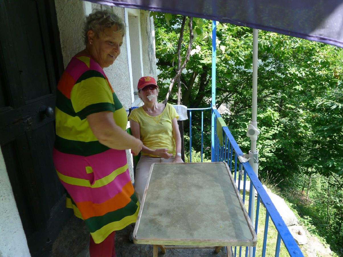Fränzi war uns eine gute Gastgeberin: Das Haus hat unheimlich Charme und sie erzählte uns die Geschichte des Hauses und wie sie dazu kam, als junge Frau, rein zufällig. Dann bereitete sie einen feinen Salat zu und wir genossen den einzigen Luxus des Hauses, fliessendes Wasser - das ermöglicht auch ein ganz normales WC, Strom hat es keinen ...