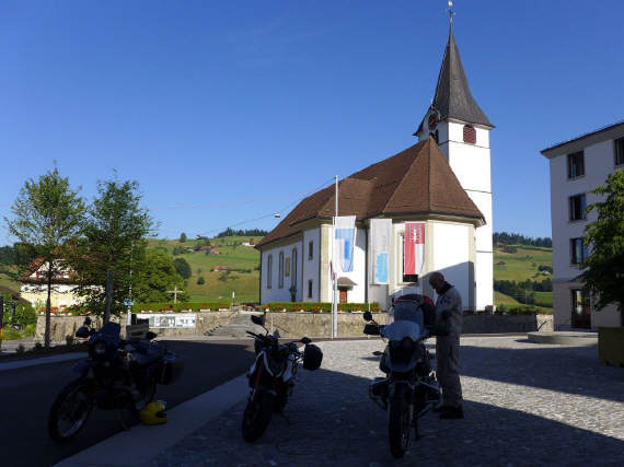 Die Einladung erfolgte als Rundmail an die Kursteilnehmer der Kurse in Zug und in Interlaken, sowie an ein paar ausgewiesene «Langstreckenfahrer», denn eine Ausfahrt über 500 Kilometer, vorwiegend auf Passstrassen funktioniert nur mit erfahrenen, routinierten Töfffahrern mit ziemlich viel «Sitzleder». Wir starteten zu dritt bis zum Treff in Entlebuch, und danach in anderer Zusammensetzung zu dritt für den Rest der Reise. Abends in Altdorf UR trennten sich unsere Wege: Urs nahm den Rest nach Dietikon allein unter die Räder, während Gregor und ich uns noch die Ibergeregg und die Sattelegg genehmigten. Bei Reichenburg erreichten wir die Autobahn, er in Richtung Norden, ich nach Westen. Abgesehen von wenigen Kilometern am Lukmanierpass waren es die einzigen Autobahn-Kilometer des Tages. |