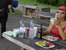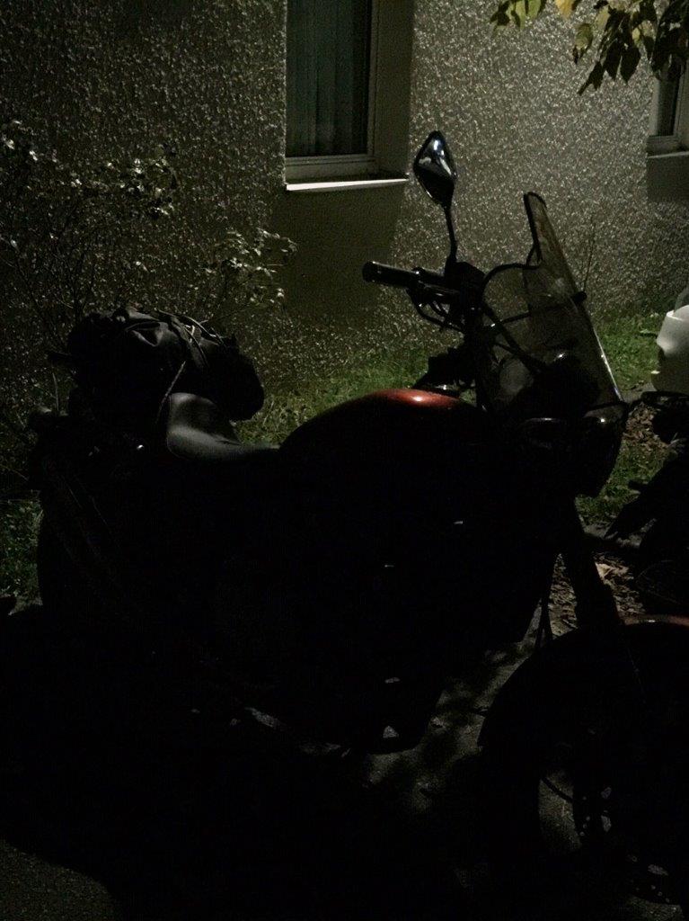 Da ich schon angehalten hatte, erledigte ich mein Pipi-Geschäft vis-à-vis am Rand des Entsorgungsplatzes, ass mein aus der Schweiz mitgebrachtes Sandwich und zog dann weiter. Die Strasse, welche durch eine hügelige Landschaft führte, entpuppte sich als «Rennstrecke»: Angehängt an einen einheimischen Fahrer, riskierte man nicht in Radar-Fallen zu tappen, mein Cruiser entpuppte sich als Dragster und das Benzin floss in Strömen durch die Vergaser, bis es bei einem Überholmanöver eines Campers zu stottern begann! Ich drehte den Benzinhahn, es stotterte weiter - ach, Scheiss! Und das nach 229 km - Tank leer! |