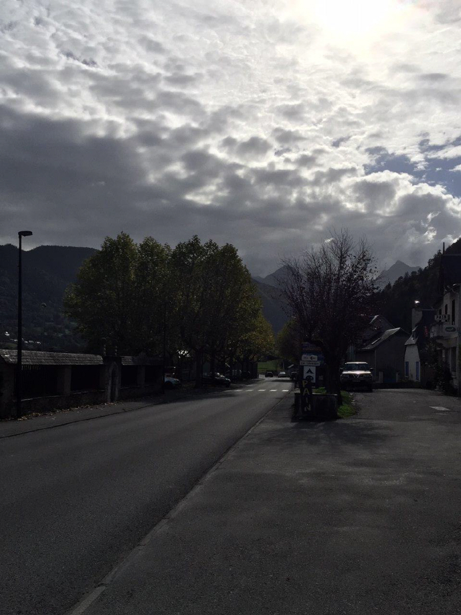 Ich folgte der «928», eine extrem schnelle Strasse - ich beobachtete mehr die Strassenränder (siehe oben) denn die tolle Landschaft mit viel Ackerbau. Die «D40», als Fortsetzung der 928, wurde schmaler: Ich hatte vor mir einen Einheimischen, der mich flott lotste. Nachdem er abgebogen war, wurde die Strasse noch schmaler und endete schliesslich in einem Gehöft. Eine Pinkel- und Verpflegungspause stand eh zur Debatte und nach ein paar Kilometer auf kleinsten Strässchen (auch im Kreis!) fand ich bei Castelnau-Magnoac zurück auf die Hauptverkehrsstrecke, hier der «929». Doch der Umweg hatte sich gelohnt. Nach Lannemezan wurde die Streckenführung in den Hügeln deutlich spannender, z.T. mit weiten Serpentinen. Frühzeitig wurden die Beschränkungen des Tunnels nach Spanien angesagt, ich war also auf dem richtigen Weg. Die Täler wurden enger, die Landschaft ähnelte unseren Alpenpass-Zufahrten. Auch wurde es wieder deutlich kühler in der Höhenlage, Wolken am Himmel deuteten auf einen Wetterumschwung. |