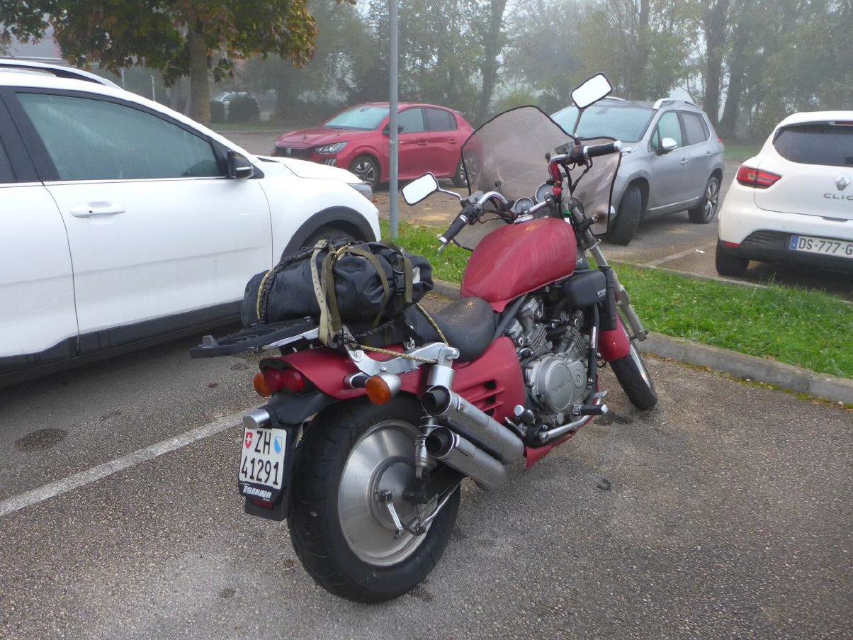 Letzte Woche kam ich von Spanien zurück. In einer 5-tägigen Fahrt habe ich die Honda VF750C Magma (die mit dem aus dem Vollen gefrästen Hinterrad und vier Auspuffen, 35-jährig) von Ursula nach Fernan Perez gefahren, welches in der Nähe von Almeria liegt. Ganze 2221 lustvolle Kilometer war der Trip, abgesehen von der Autobahn bis Biel, auf lauter Haupt- und Nebenstrassen durch Frankreich und Spanien. Der Tunnel de Bielsa durch die Pyrenäen war ein spezielles Erlebnis: Man konnte in dem 3 km langen Tunnel von der Einfahrt des (N-S) 5% fallenden Tunnels das Tunnelende sehen, ich hatte mich an die Spitze der Kolonne gesetzt, weil er aus mir unklaren Gründen nur einspurig befahrbar war. Die ersten beiden Tage lagen die Höchsttemperaturen bei 8 Grad - gegen die Kälte kann man sich gut schützen - dann so um die 11 Grad und am Meer sah ich eine Anzeige von 29 Grad, was ich zwar bezweifle. Einen Tag nach meiner Ankunft bestieg ich das Flugzeug in Malaga, welches mich über Madrid wieder nach Zürich Airport brachte. Aber das ist dann wieder eine andere Geschichte ...